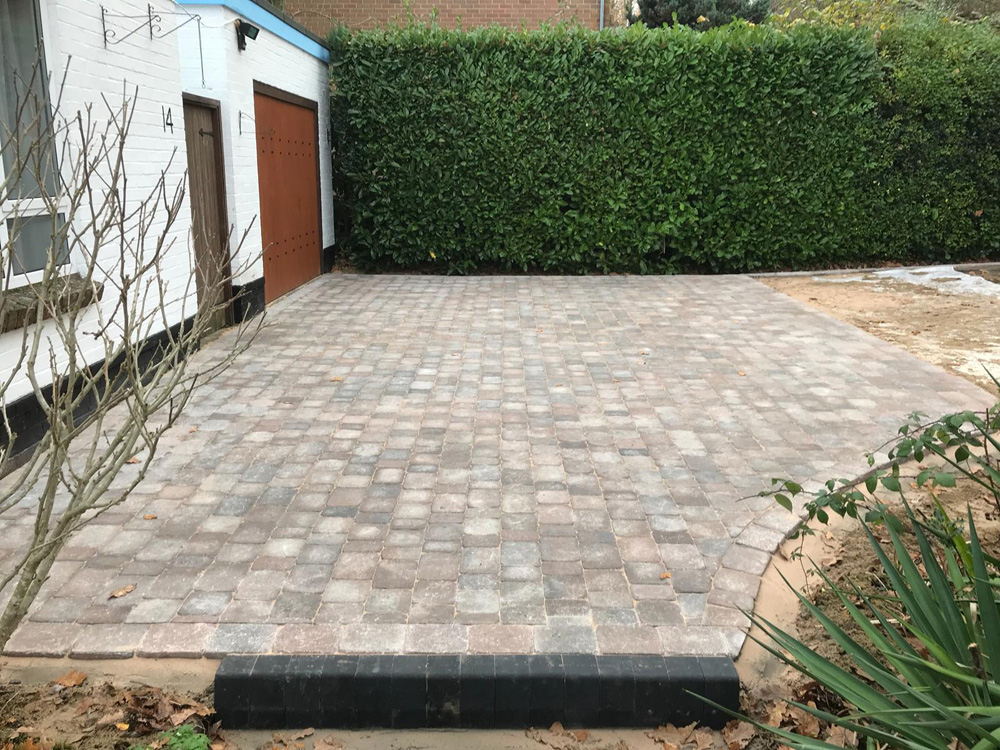 350 square metres of fractured tarmac driveway and disarrayed patio slabs were transformed to create very attractive and extremely functional interconnected hard standing and leisure areas. The work was done quickly and to a high standard including creating some innovative patterns within the paving. The overall effect is good to look at and in respect of which there have been many favourable comments.